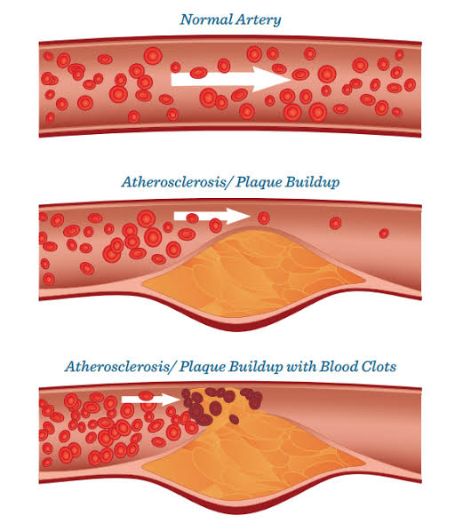 When there is an imbalance of Cholesterol level in the Body, the LDL Cholesterol forms plaque (debris) and sticks to the arteries therefore blocking it. As it blocks the flow of blood, it starves the heart and other structures of oxygen.