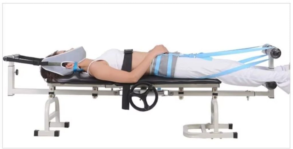 The Spinal Traction Device uses a precise, controlled mechanism to gently pull the spine into alignment, gradually stretching the vertebrae to create space and relieve tension. It can be adjusted for various levels of traction depending on the patient’s condition.